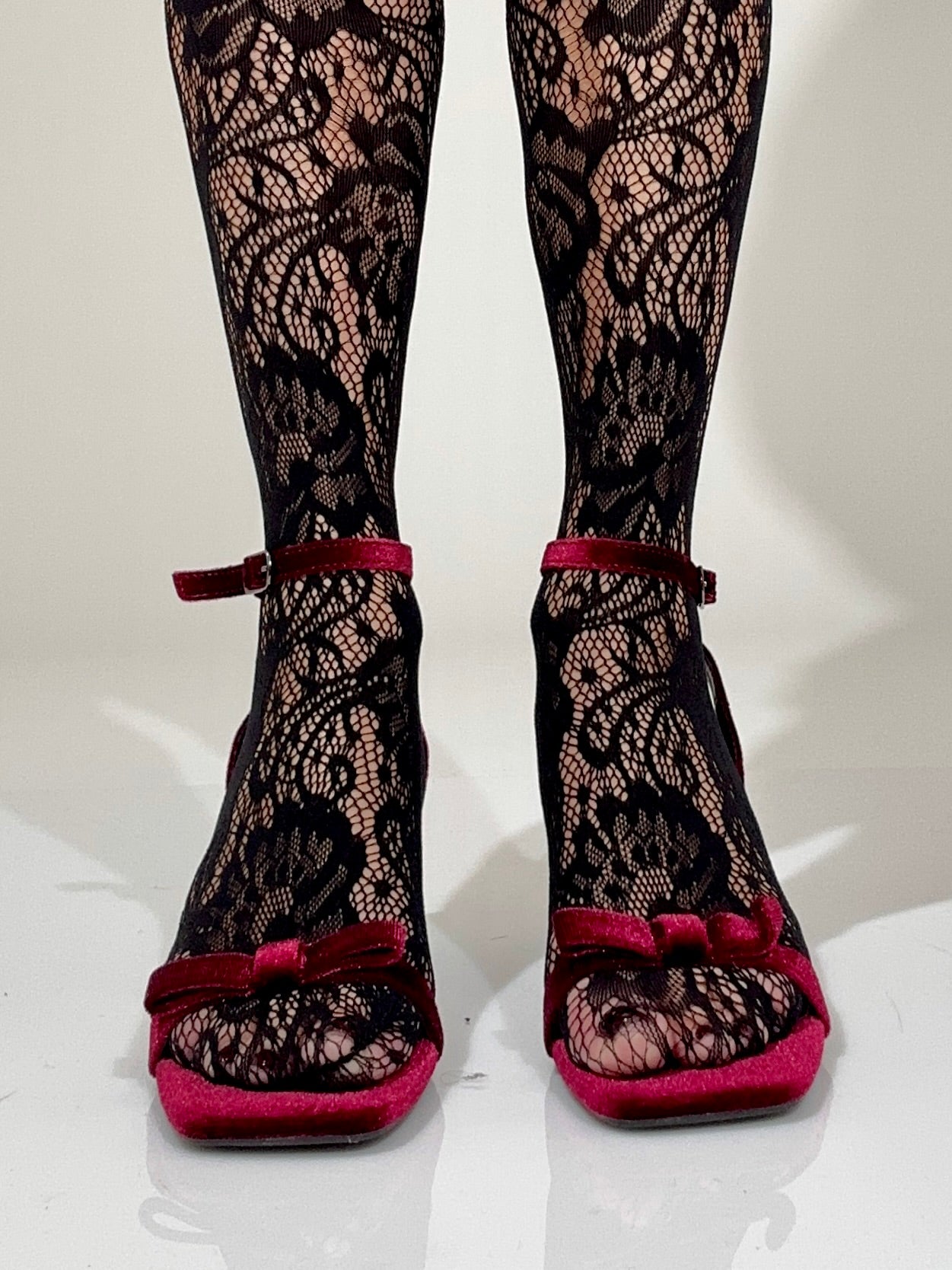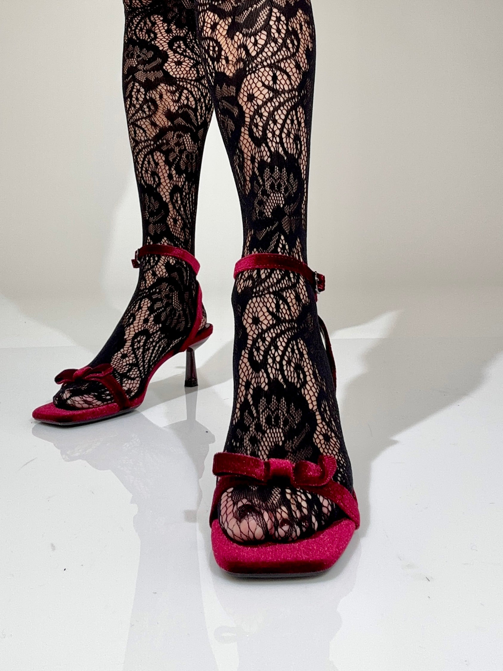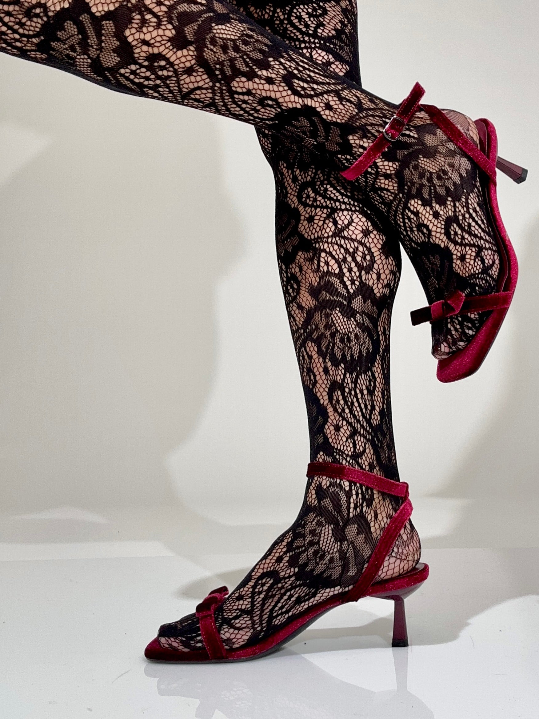 Sandalo in velluto bordeaux con fiocco