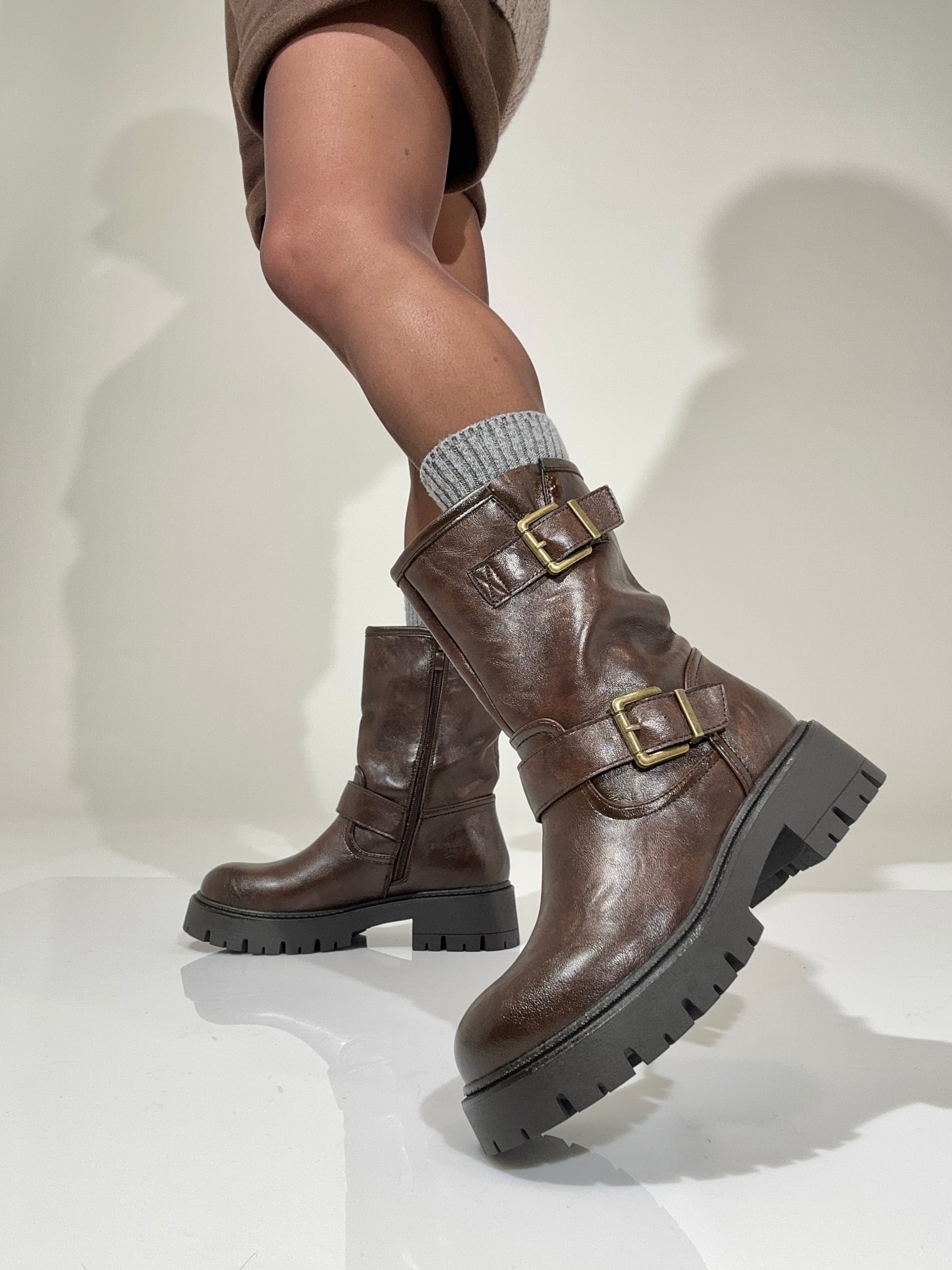 Stivale in simil pelle marrone con fibbie